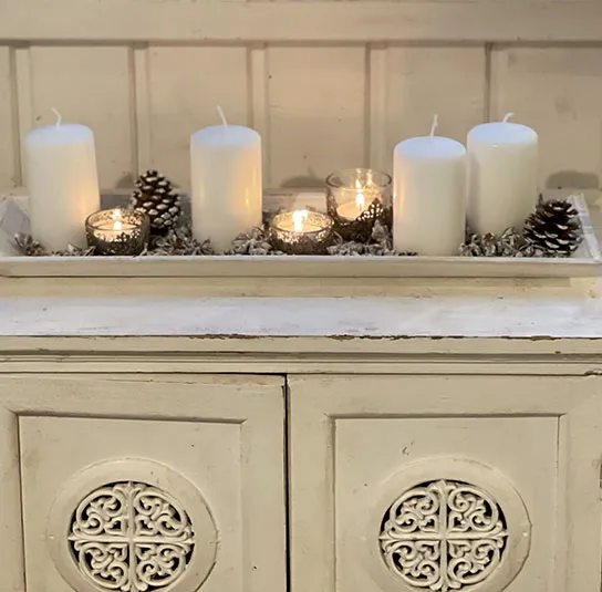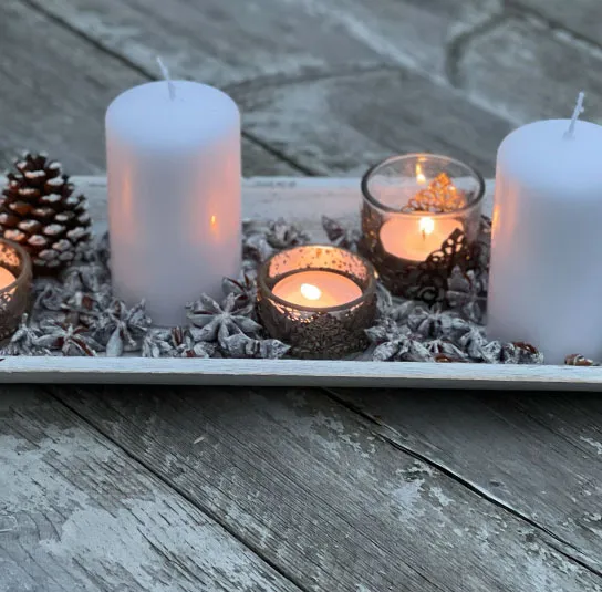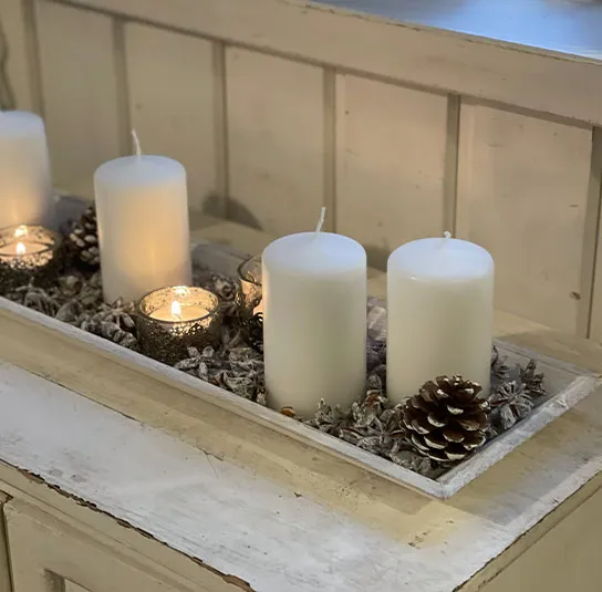 4 Kerzen weiß : h= 10cm, d= 6cm