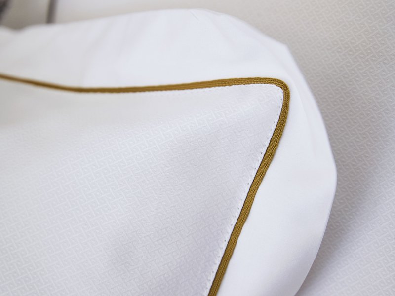 Diese reinweiße Luxusbettwäsche ORSAY von ALEXANDRE TURPAULT überzeugt durch den samtweichen und glänzenden Satin aus hochwertigster Bio-Baumwolle und dem klasischen Jacquardmuster in Guilloché-Optik. Was diese Bettwäsche aber so ganz besonders macht, ist die Individualisierbarkeit durch die Auswahl an 18 tollen Farben für die umlaufenden Satinpaspelierung an Kissen- und Bettbezug und/oder Bettlaken. Von leuchtendem, wertvollem Gold über kühle Graunuancen bis hin zu feurigen und warmen Rottönen ist sicherlich für jeden die persönliche Lieblingsfarbe dabei!