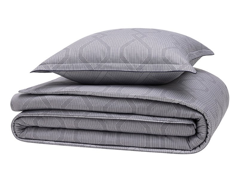 Die dunkle Wendebettwäsche RIVOLI von Alexandre Turpault überzeugt durch ein gelungenes Art Deco Design mit geometrischen, gleichmäßigen Formen und strahlt einen eher maskulinen Charakter aus. Die länglichen Sechsecke findet man auch auf der Rückseite der Bettwäsche, hier als Negativ in umgekehrter Farbstellung. Das in hochwertigem Digitalprint aufgedruckte Design ist eher kühler und zurückhaltender Natur, wirkt aber unglaublich edel und elegant…