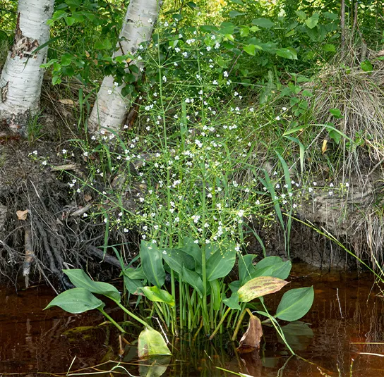 Wasserstand: Sumpfzone, Wasserrand bis in eine Wassertiefe von 40 cm. Der Froschlöffel schätzt einen gelegentlich schwankenden Wasserstand.