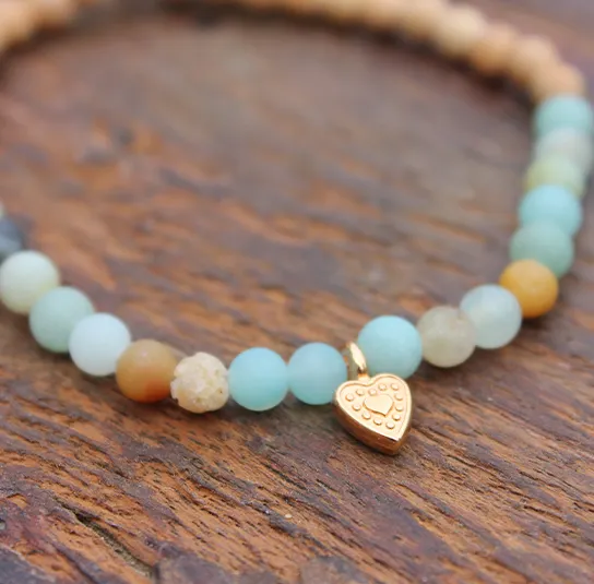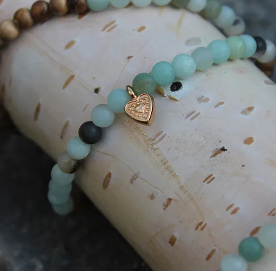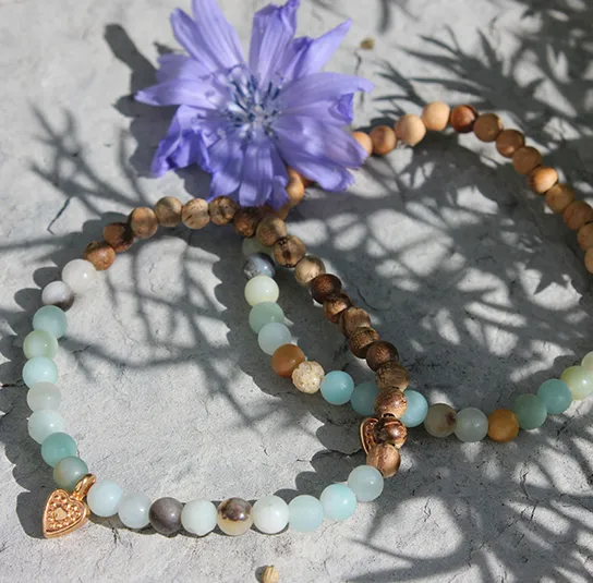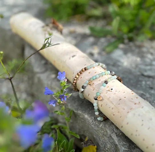 Armband aus Edelsteinen und Holzperlen, handgefertigt im Nordischen Shop.