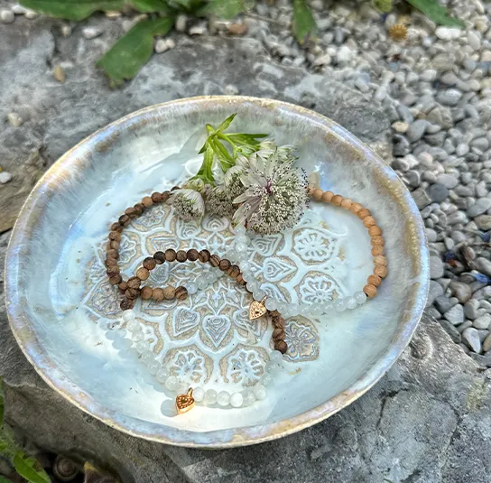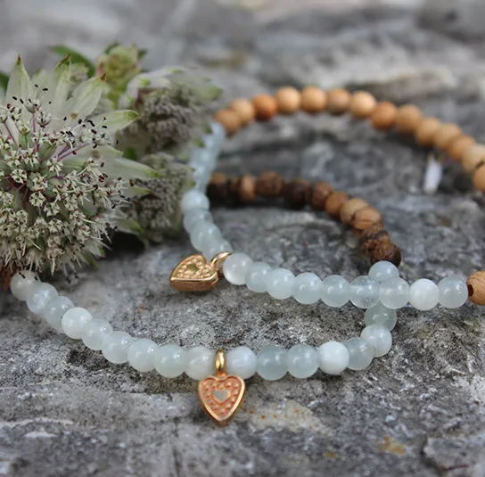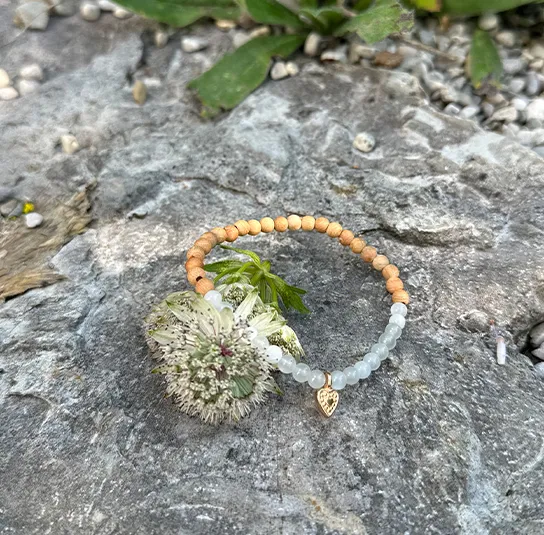 Armband aus Edelsteinen und Holzperlen, handgefertigt im Nordischen Shop.