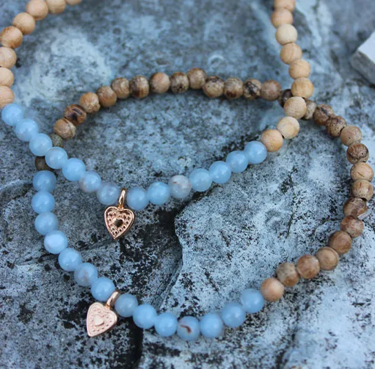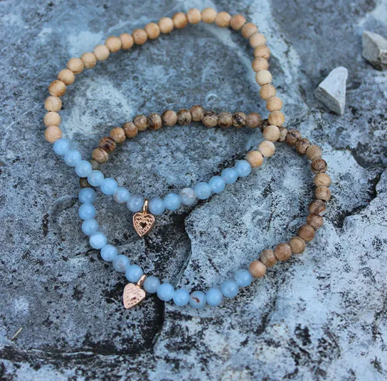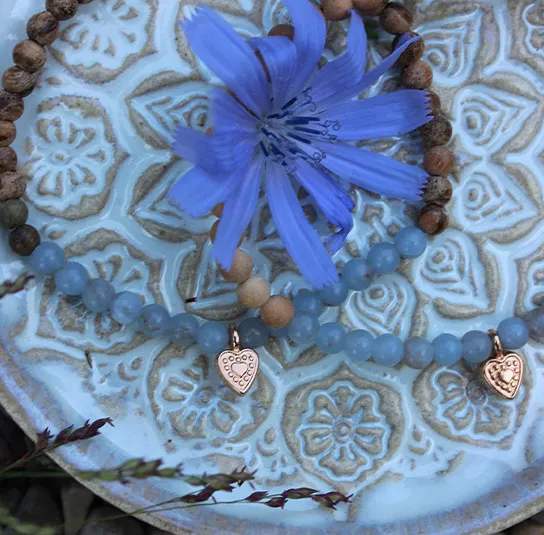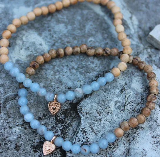 Armband aus Edelsteinen und Holzperlen, handgefertigt im Nordischen Shop.