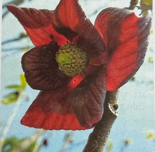 Blüte: etwa 3 – 4 cm große, kastanienbraune, glockige Blüten, die in den Blattachseln der Vorjahrestriebe sitzen. Die Blühperiode kann einige Wochen dauern. Die Blüten sind bereits im Herbst als schlafende Blütenknospen entwickelt.
