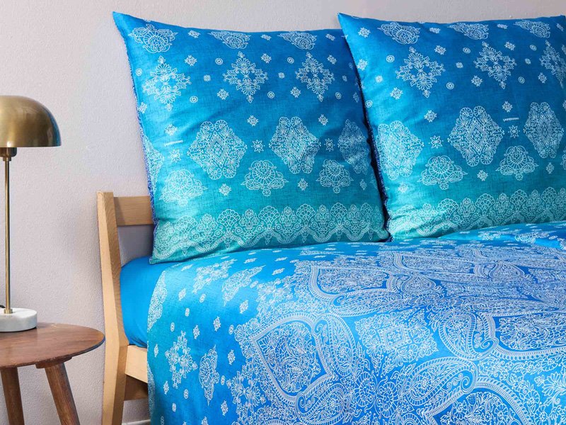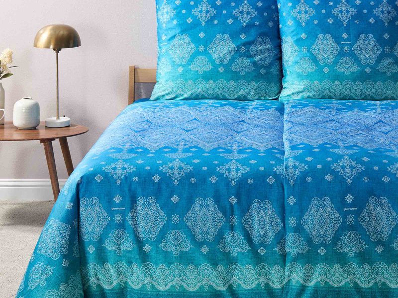 Die Bettwäsche KERALA B1 wird in deutschen, österreichischen und Schweizer Maßen angeboten. Gefertigt wird diese aus 1oo% feinstem Baumwoll-Maco-Satin, ist bis 60 Grad waschbar und auch trocknergeeignet. Durch die Verwendung eines hochwertigen Drucks behalten die Farben ihre Intensität und bleichen nicht aus. Somit werden Sie sehr lange Freude an dieser wunderschönen Bettwäsche haben, die Sie mit den dazu passenden Bassetti Kissenbezügen perfekt dekorieren können!