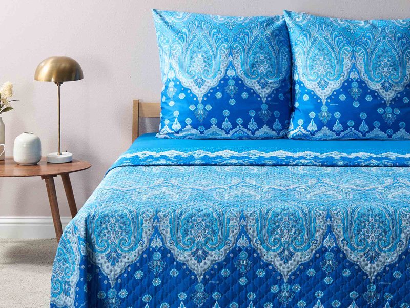 Die Tagesdecke ISOLABELLA B1 blau gibt es in vier Größen. Gefertigt werden diese aus 1oo% Baumwolle, die Füllung ist aus Polyester. Die gesteppten Bettüberwürfe sind bis 40 Grad waschbar und auch trocknergeeignet. Durch die Verwendung eines hochwertigen Drucks behalten die Farben ihre Intensität und bleichen nicht aus. Somit sind alle Voraussetzungen für eine ansprechende Tagesdecke für Ihr wundervoll dekoriertes Bett gegeben…