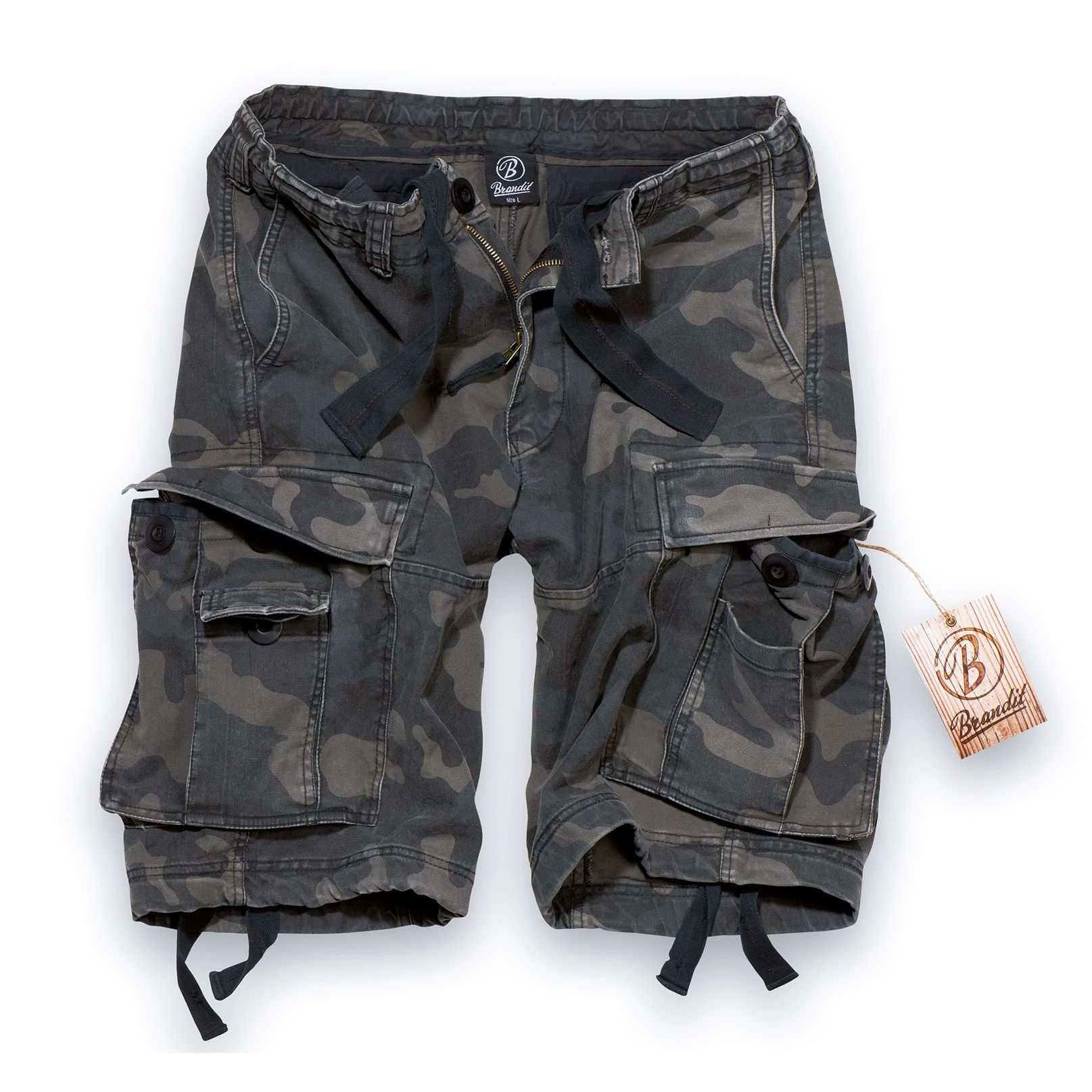 Vintage Shorts von Brandit. Maschinell so bearbeitet, dass sie abgetragen und verwaschen aussieht.