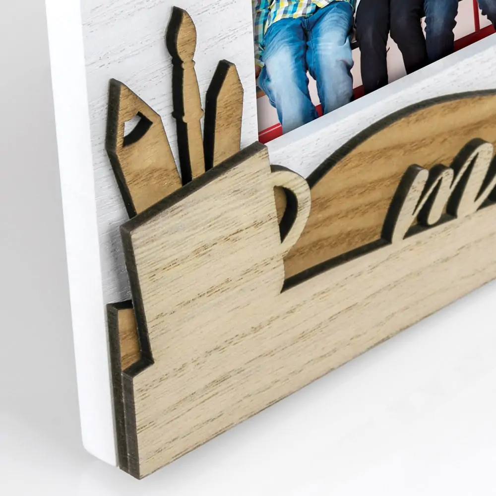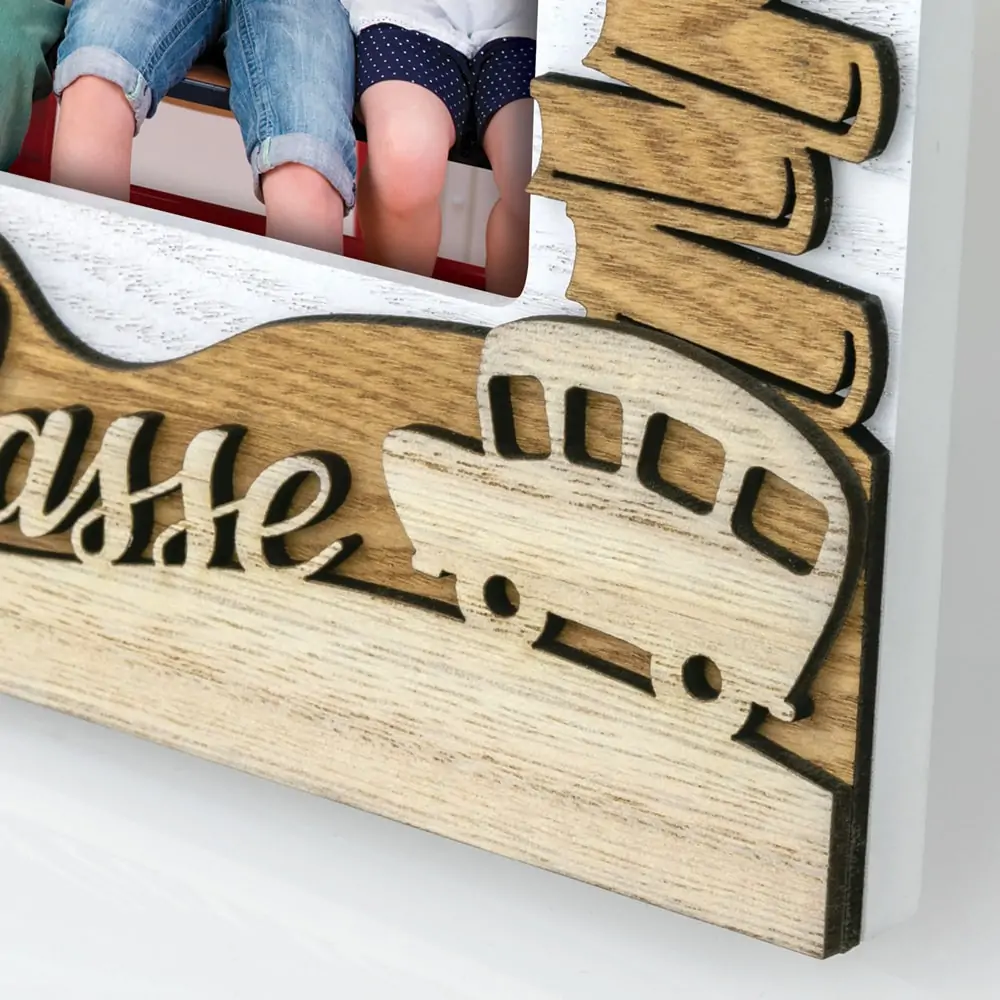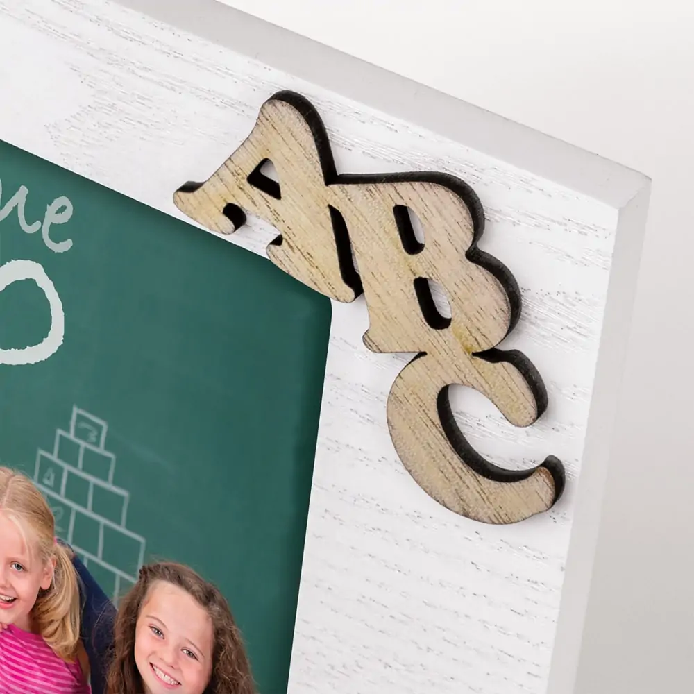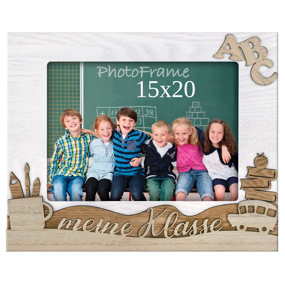 matches21 Bilderrahmen Fotorahmen Holz weiß hellbraun Schule Klassenfoto 3D Dekor Schriftzug Querformat 1 Stk 2 Formate