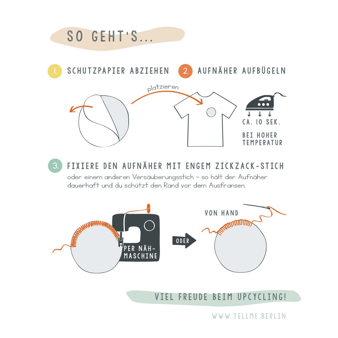Der Aufnäher aus Bio-Baumwolle ist ein echter Hingucker. Flicke damit Löcher, überdecke Flecken oder mach ein Lieblingsstück noch außergewöhnlicher! Das Verschönern geht ganz fix. Einfach aufbügeln und mit Zick-Zack-Stich per Hand oder der Nähmaschine festnähen. Du bekommst den Aufnäher auf einer Karte mit Anleitung.