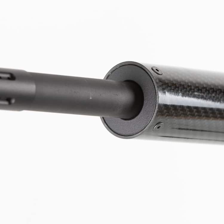 Dieser schlichte Shroud umfasst den Lauf auf einer Länge von 33cm und kann einfach auf den vorhandenen AR-15 Adapter der Carmatech SAR-12 aufgeschraubt werden. Die Laufführung am vorderen Ende des Shrouds sorgt dafür, dass der Lauf mittig im Shroud geführt wird und von außen keine Verschmutzungen ins Innere gelangen können.