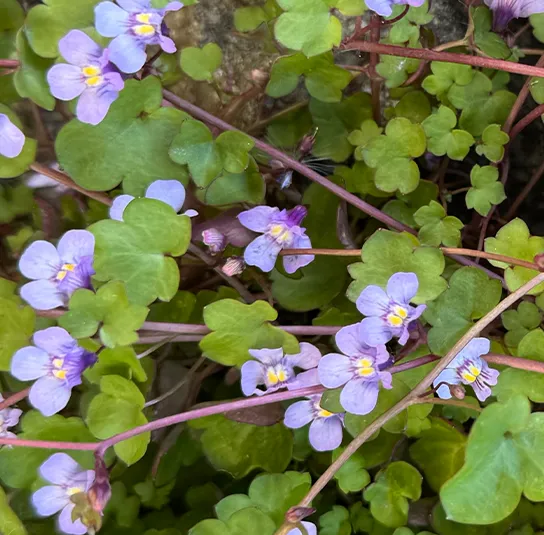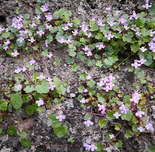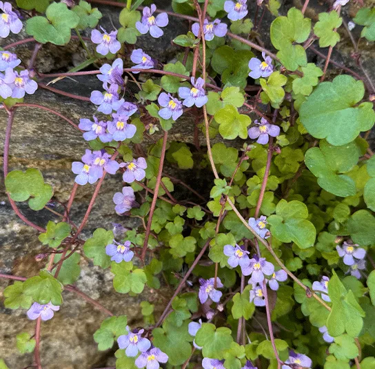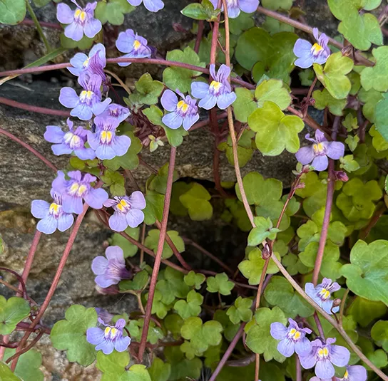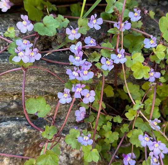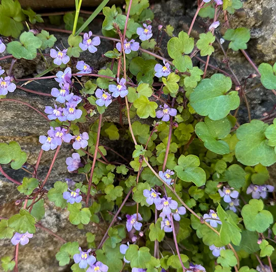 Botanisch: Cymbalaria muralis (Synonym Linaria cymbalaria)