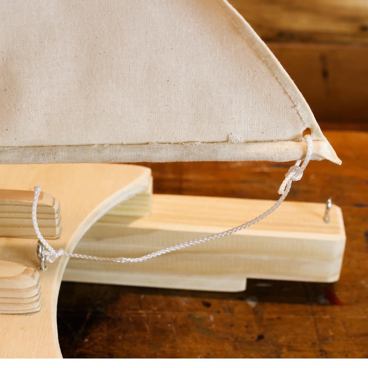 Ihr könnt die Segelstellung justieren und mit der mitgelieferten Schnur aufpassen, dass das Boot nicht davonsegelt. Bunt bemalt geht’s los!