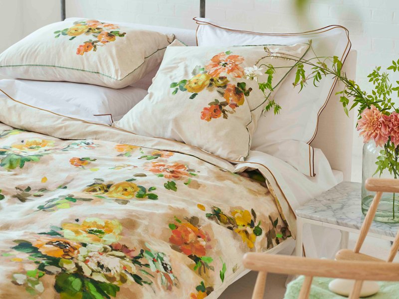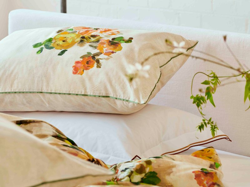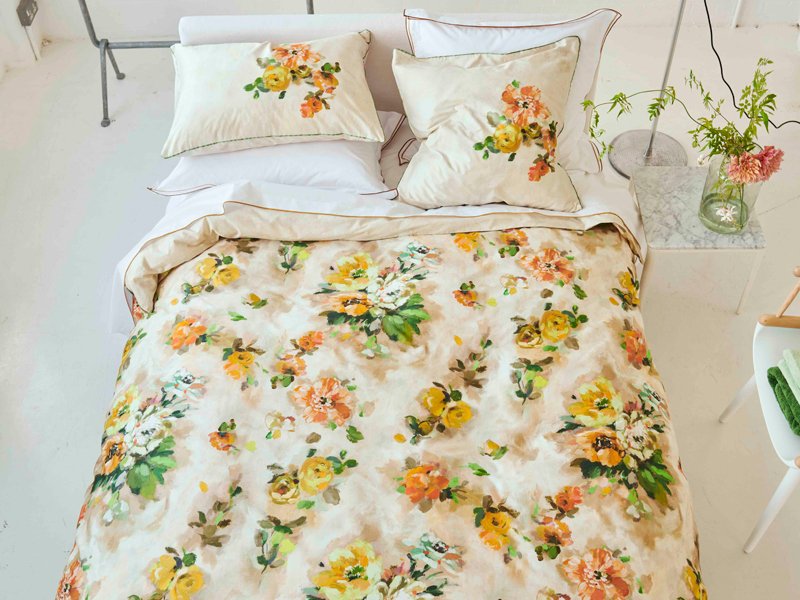 Die Bettwäsche GIARDINO DI ROSE ACACIA von Designers Guild vereint elegantes Design mit luxuriösem Komfort und zaubert die lebhafte Farbenpracht eines blühenden Rosengartens direkt ins Schlafzimmer. Das herrliche florale Muster zeigt üppige Rosen in sanften Pastellfarben und wird von einer subtil elegantenen Farbauswahl begleitet. Die Mischung aus zarten Lachs-, Orange-, Creme-, und Grüntönen schafft eine entspannende Atmosphäre und harmoniert perfekt mit unterschiedlichen Einrichtungsstilen.