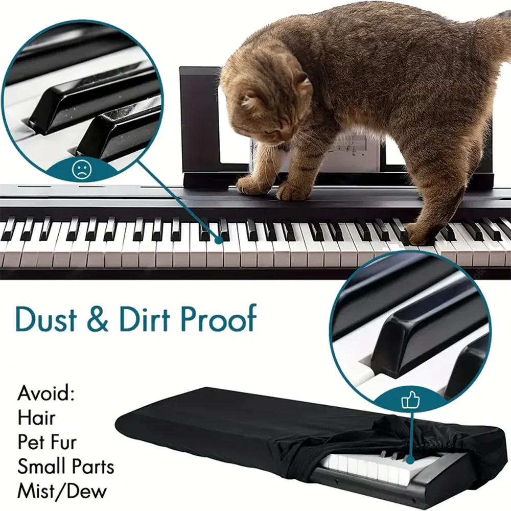 Schütze dein E-Piano mit dieser hochwertigen, staubdichten Abdeckung – ideal für 61- oder 88-Tasten-Keyboards. Gefertigt aus wasserdichtem Nylon und gewaschenem Polyester, schützt sie zuverlässig vor Staub, Tierhaaren, Spritzwasser und Abnutzung. Das vollständige Abdeckungsdesign sorgt dafür, dass dein Instrument immer sauber und einsatzbereit bleibt – ob zu Hause, im Studio oder auf Reisen.