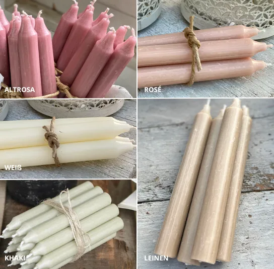 – 1 Stabkerzen wahlweise in den Farben: leinen, creme, rosé, khaki, altrosa