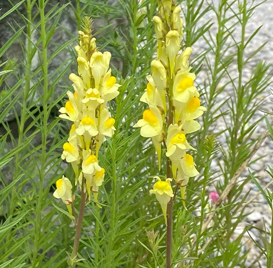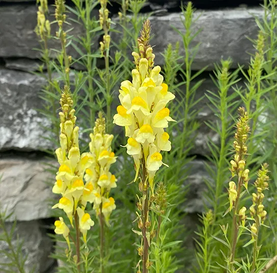 Blüte: aufrechte, schwefelgelb-orange Trauben mit dem typischen Löwenmaul-Blütchen