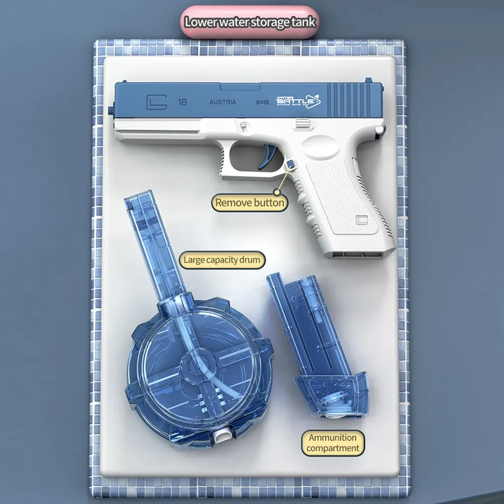 • Elektrische Wassersp eicher pistole :Die elektrische Wassersp eicher pistole ermöglicht ein einfaches und effizientes Schießen von Wasser und eignet sich somit perfekt für Aktivitäten im Freien.