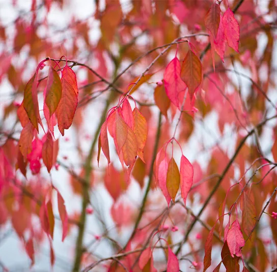 Herbstfarbe: sehr prächtig; ein oftmals leuchtendes Feuerwerk aus Rot- und Orange-Tönen