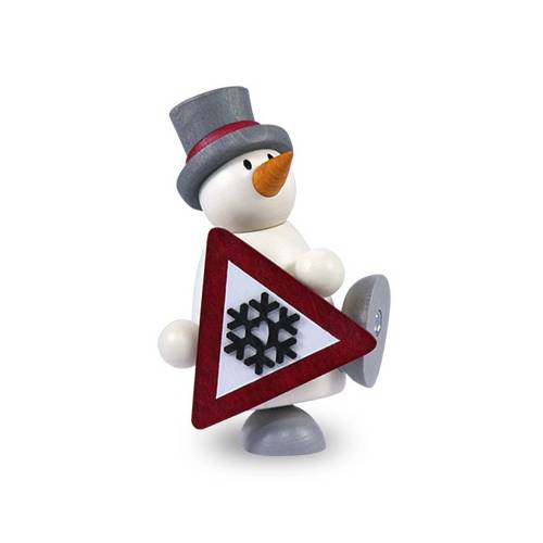 Diese Figur mit Herz, Fritz mit Schild stammt von der Firma Hobler aus dem erzgebirgischen Grünhainichen, wo er es sich mit seinem Freund Otto in der Serie der witzigen Schneemänner gemütlich macht.