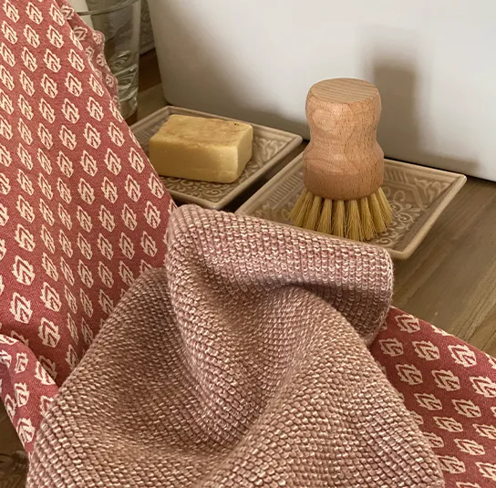 Geschirrtuch Hjärta und Waschtuch Rose im Set (Ersparnis 1,90)