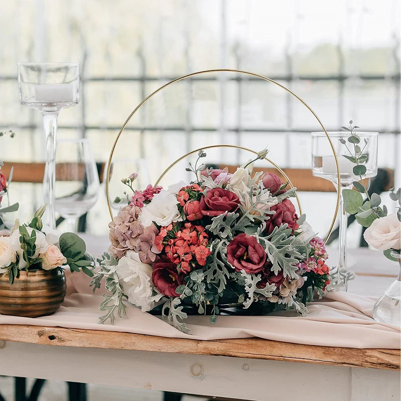 Metall kranz Gold Kreis Reifen Holz Basis Karten halter Hochzeits feier Tisch dekoration DIY Blumen Kranz Girlande runde Draht ringe