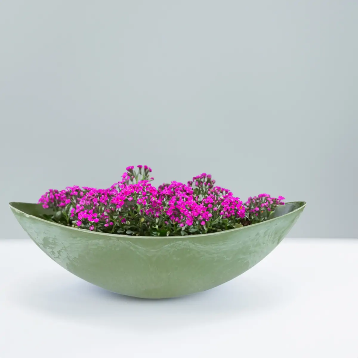 matches21 Jardiniere Pflanzschalen Kunststoff Dekoschalen Pflanzgefäße Used Look grün oval 1 Stk – 2 Größen wählbar