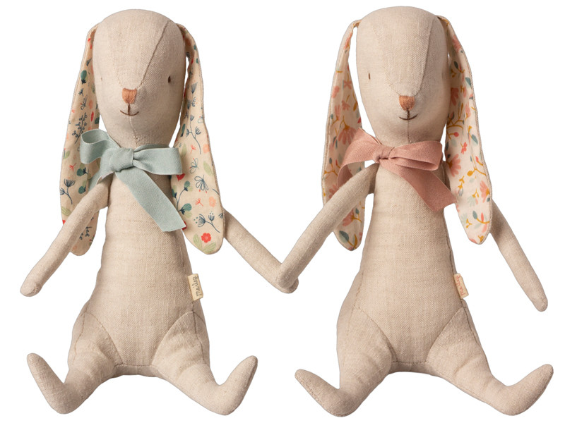 Bunny Albin ist in einer weichen Leinenqualität gefertigt. Er hat Magnete in seinen Händen, damit er sich an jedem Metallteil aufhängen oder das Osterei festhalten kann.