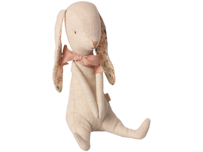 Bunny Albina ist in einer weichen Leinenqualität gefertigt. Sie hat Magnete in ihren Händen, damit sie sich an jedem Metallteil aufhängen oder das Osterei festhalten kann.