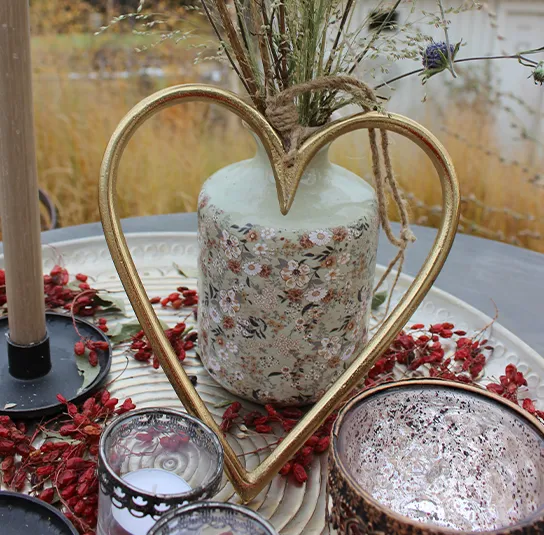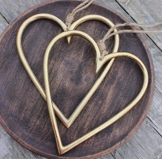 Herzanhänger gold mit Hanfschnur zum Aufhängen