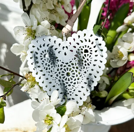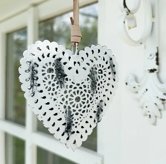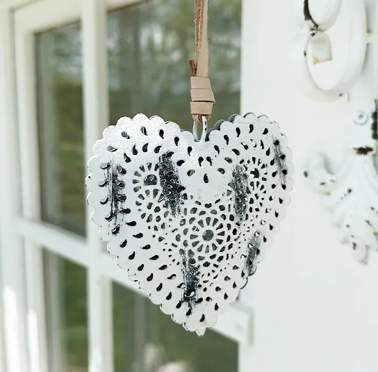 Herz zum Hängen aus Metall in weiß