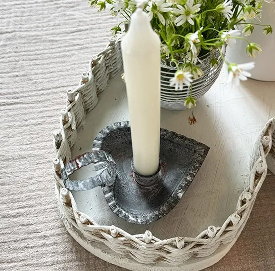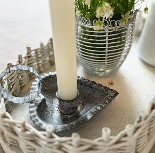 Kammerleuchter Herz grau-weiß