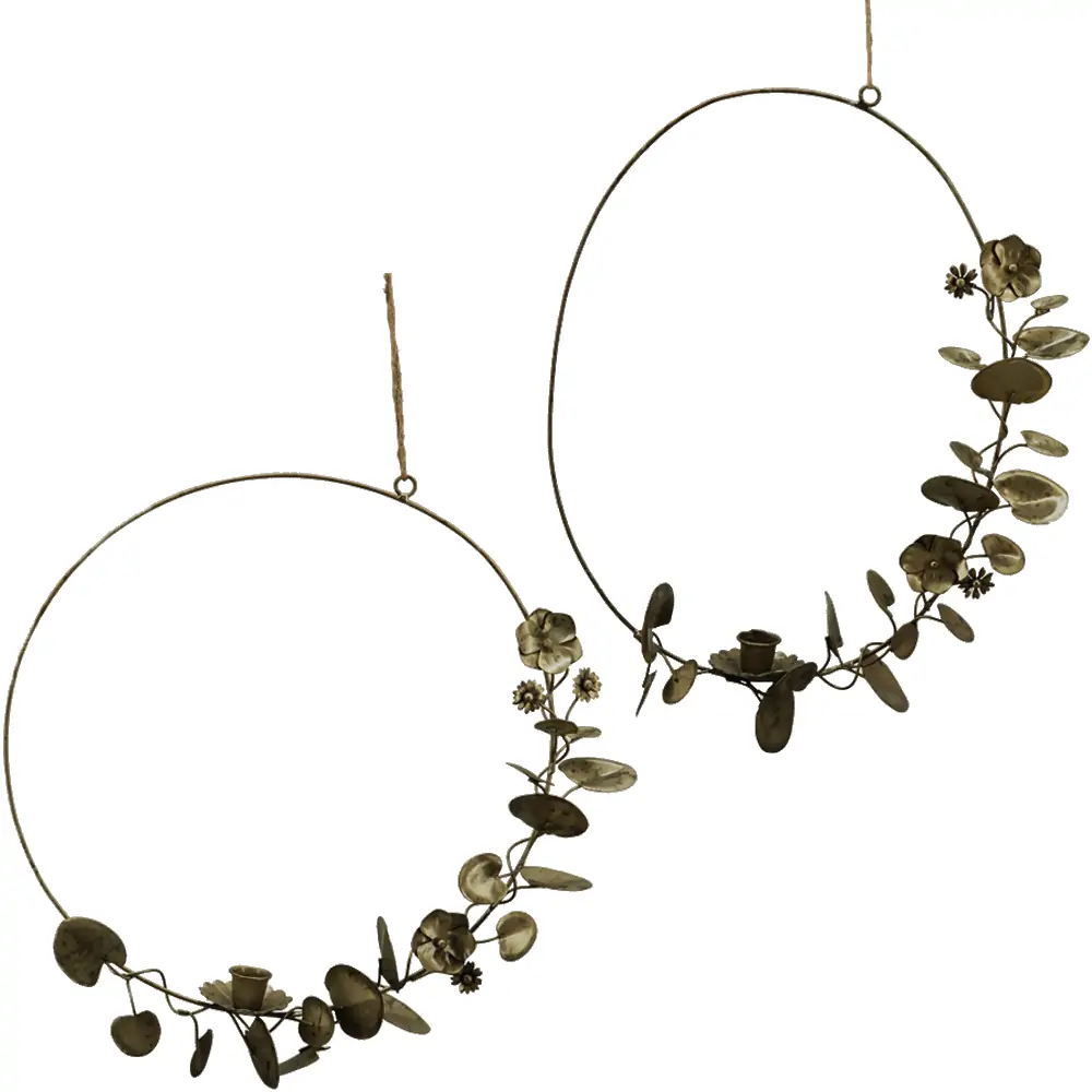 matches21 Kerzenhalter Ring Dekohänger mit Schnur Kranz Blätter & Blumen Hängedeko Metall braun 1 Stk in 2 Größen