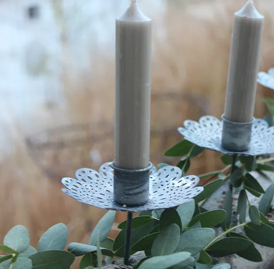 Kerzenhalter mit Spieß für Stabkerzen in hellgrau