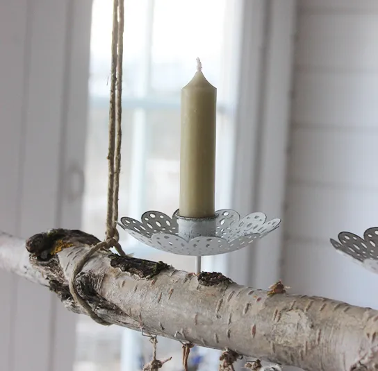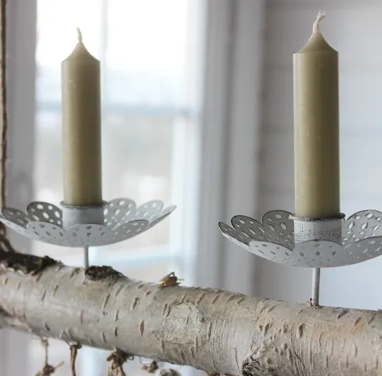 Kerzenhalter mit Spieß für Stabkerzen in weiß