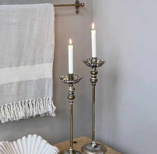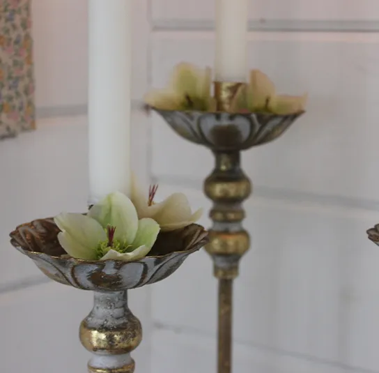 Kerzenständer gold antique in 2 verschiedenen Größen mit Rüschen