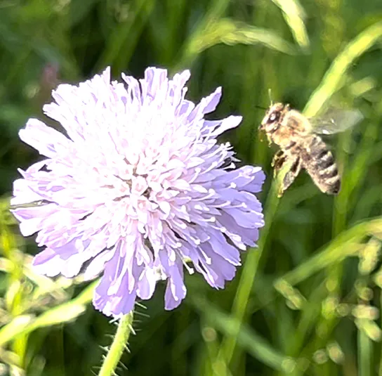 Auf die Blüte der Witwenblume sind die Skabiosen- und Knautien-Sandbiene und die Knautien- Hosenbiene spezialisiert und sammeln deren Pollen für ihre Nachkommen.