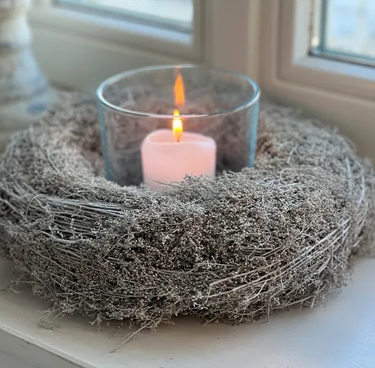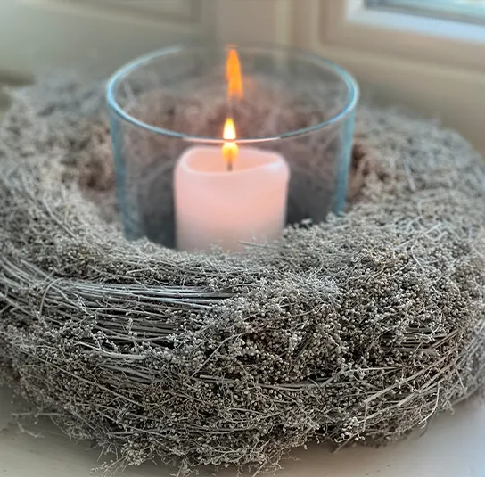 Kranz Artemisia mit Glas im Set inkl weiße Kerze