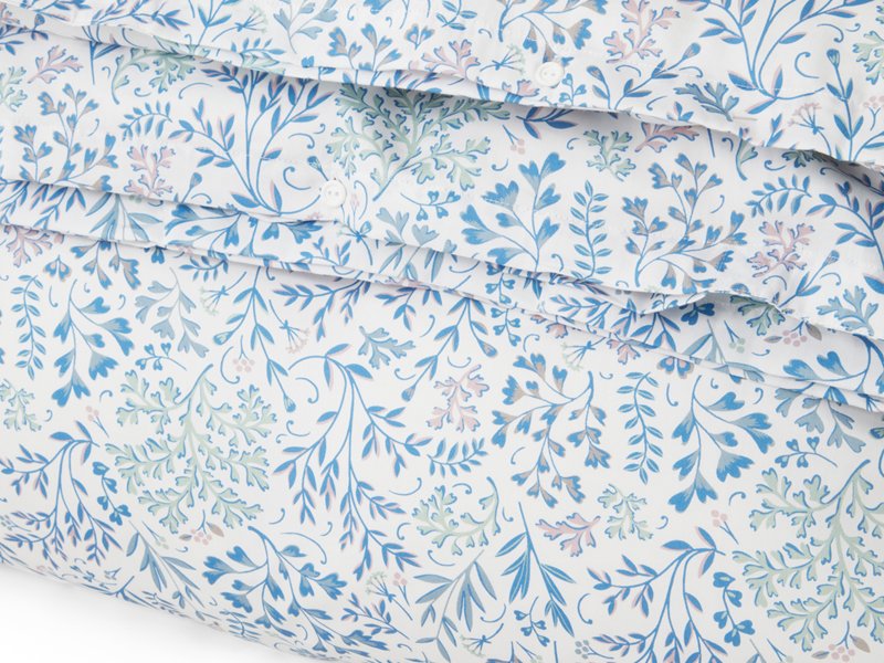 Diese leichte und grazile Bettwäsche mit dem zarten, floralen Design in Blau, Grün und Rosa verzaubert vom ersten Blick an… Obwohl sie überhaupt nicht aufdringlich erscheint, so hat sie doch ganz viel Flower Power zu bieten… Der schimmernde Glanz des weißen Baumwollsatins, ausgerüstet mit Antistatik- und Antipilling-Eigenschaften, verleiht Ihrem Schlafzimmer einen frischen und luftigen Charakter und macht ganz viel Lust auf Frühling, längere Tage, Sonnenschein und vor allem das Erwachen der Natur mit ganz viel Blumenduft…