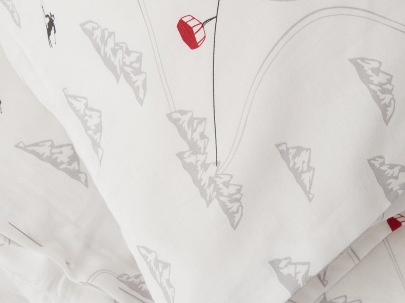 Ein Must-Have für alle Skifahrer! Diese weiße, glänzende Satinbettwäsche WINTER PRINTED COTTON SATEEN BED SET zeigt ein originelles Wintermotiv als Allover-Design, in dem schwarze Skifahrer und rote Gondeln sich zwischen den Bergen durchschlängeln. Das Muster ist leicht und nicht überladen und lässt sich somit perfekt mit den anderen Bettwäschen der HOLIDAY 23 Collection kombinieren…