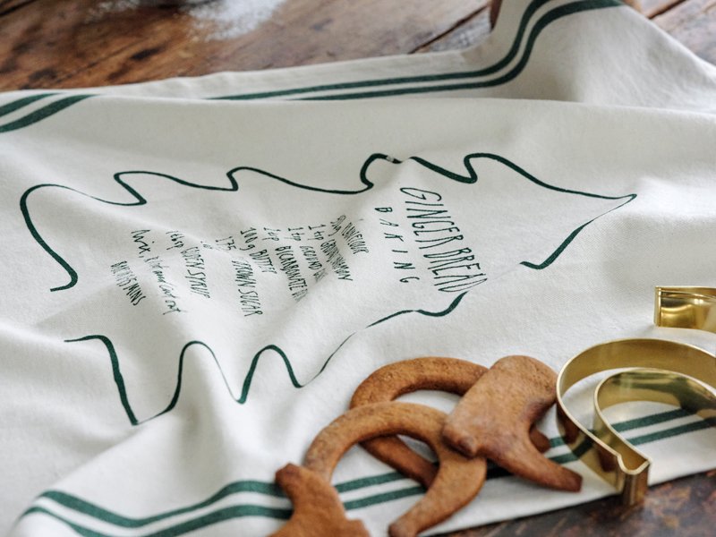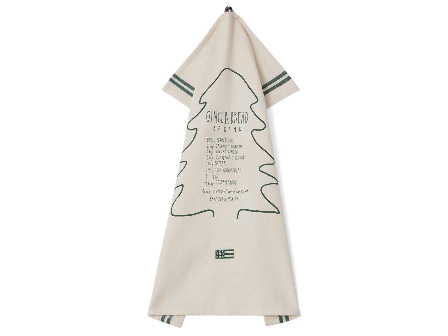 Lebkuchenrezept einmal ganz anders dargestellt… Das originelle Lexington Küchentuch GINGERBREAD ORGANIC COTTON KITCHEN TOWEL zeigt eine Weihnachtsbaum-Silhouette mit einem leckeren Lebkuchenrezept, welches in der Mitte abgedruckt wurde. Wenn dieses tolle Design mal keine Voraussetzung für das Gelingen ist?!