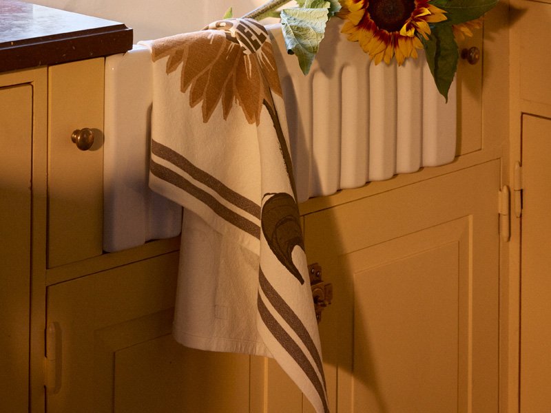 Dieses weiße Geschirrtuch in Fischgrätoptik und mit dem lässigen, saisonalen Sonnenblumendruck darf in der diesjährigen Herbstküche auf keinen Fall fehlen… Die herbstliche Farbgebung aus Braun und Goldgelb bringt die Wärme des Spätsommers nochmals zurück in die Küche, bevor wir auf dem Herd uns aber Kürbis, Maronen und Pilzen widmen… Und während sich draußen die ersten Blätter bunt färben, überlegen wir uns schon mal, mit was für Köstlichkeiten wir uns den Herbst so richtig schmecken lassen…