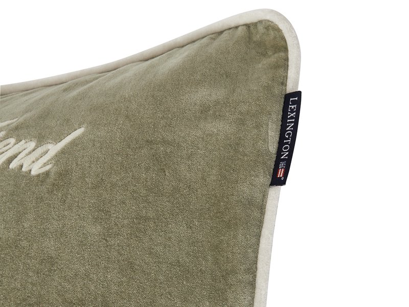 – Originelle Samtkissenhülle in Olivgrün mit hellgrauer, umlaufender Paspelierung
