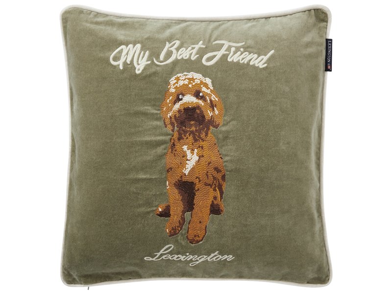 Hier kommt DIE Kissenhülle für alle Hundebesitzer und -liebhaber! Der olivgrüne Kissenbezug MY BEST FRIEND ORGANIC COTTON VELVET PILLOW COVER zeigt einen putzigen Hund, der seinem Betrachter treu in die Augen schaut…Da könnte man glatt dahinschmelzen… Ein absolutes Must Have für alle die Hunde haben und lieben!