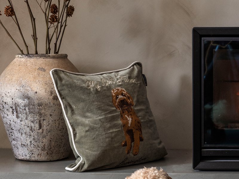 Dem besten Freund des Menschen, dem Hund, ist in dieser aktuellen Herbstkollektion Lexington „COMFORTS OF FALL“ noch ein zweites Kissen DOGS ORGANIC COTTON VELVET 50×30 PILLOW gewidmet.