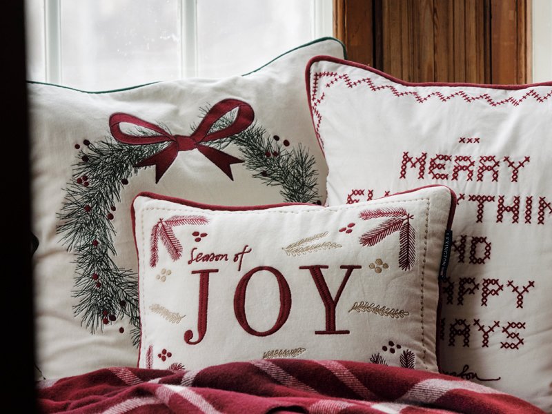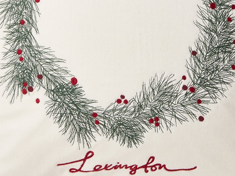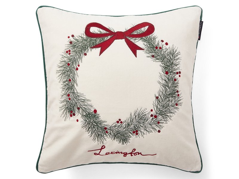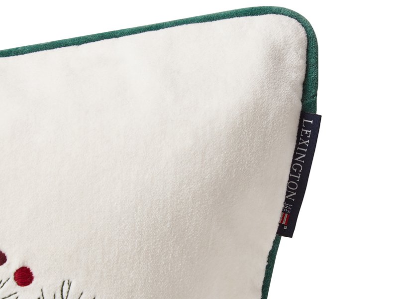 LEXINGTON Kissenhülle PINE WREATH ORGANIC COTTON VELVET PILLOW COVER, White/Green/Red, 50 x 50