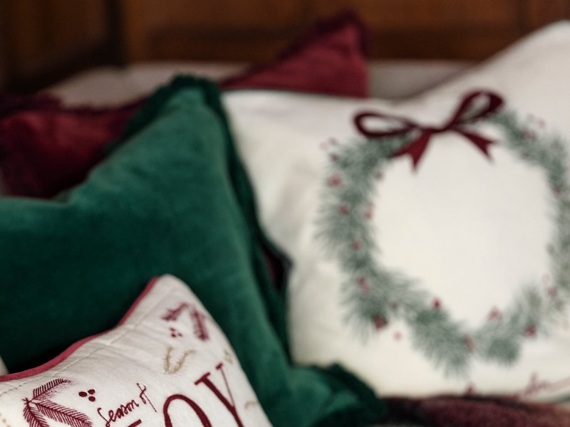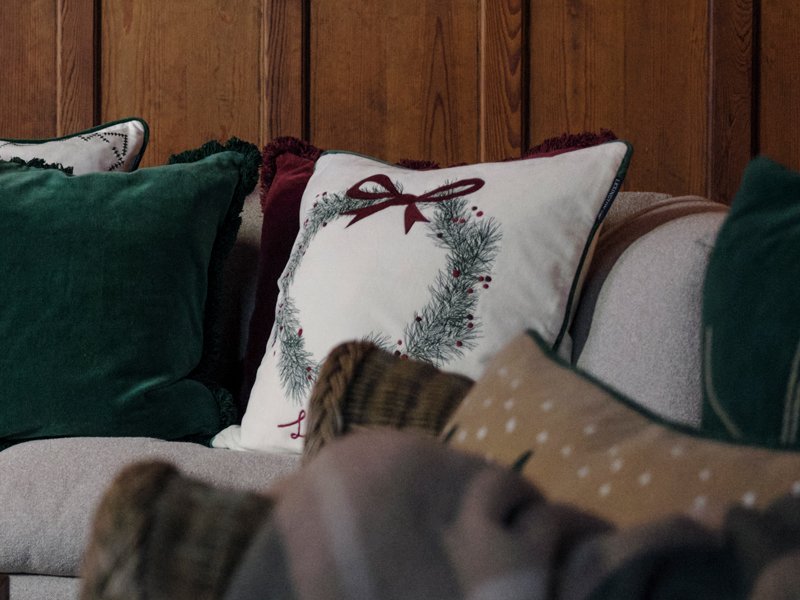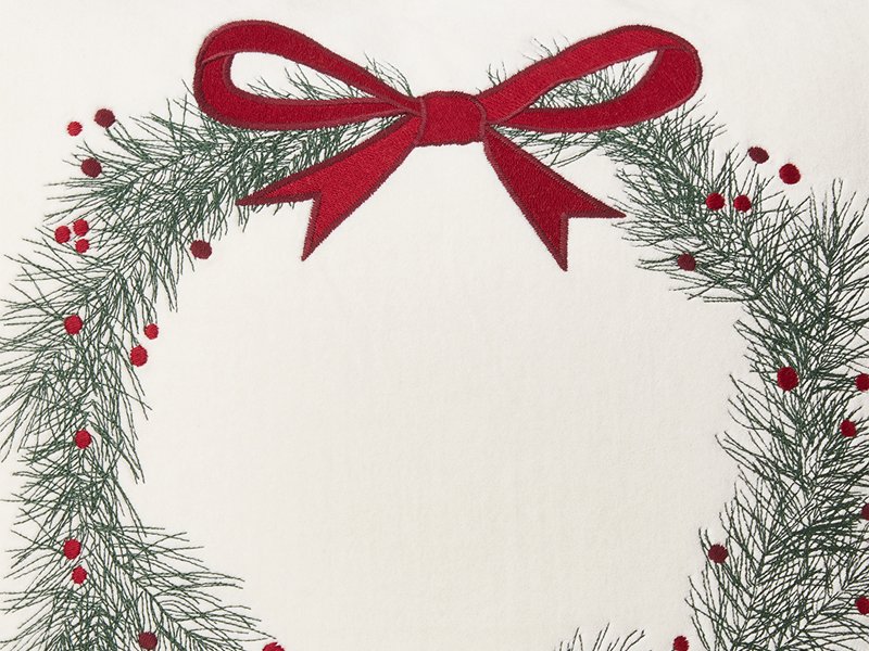 Dieses wunderschöne Weihnachtskissen in Samtqualität ist für uns ein absolutes Highlight! Ein detailliert gezeichneter Kranz aus Pinienzweigen in einem satten Grünton ist mit roten Beeren geschmückt und wird mit einer zarten, weihnachtsroten Schleife dekoriert. Was für ein harmonischer Anblick, der so viel Weihnachtsstimmung verbreitet – den Duft der frischen Zweige können wir förmlich in unserem weihnachtlich dekoriertem Zuhause riechen…