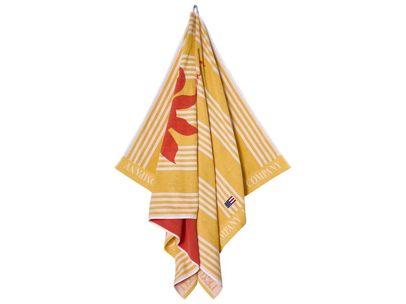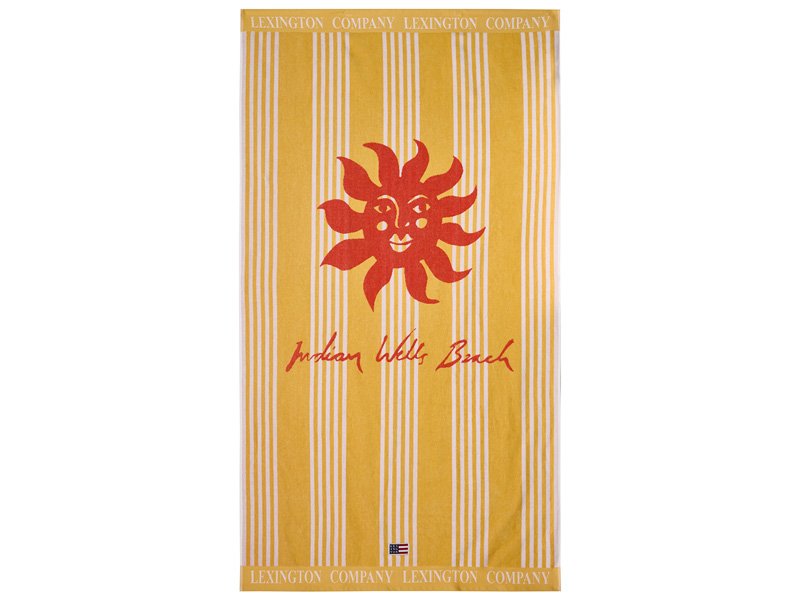 Dieses wundervolle Strandtuch in einem sonnigen Gelb ziert – wie könnte es anders sein? – ein passendes Sonnenmotiv in korallenroter Farbe. Diese wunderschöne Sonne scheint am „Indian Wells Beach“ in Amagansett den ganzen Sommer über…