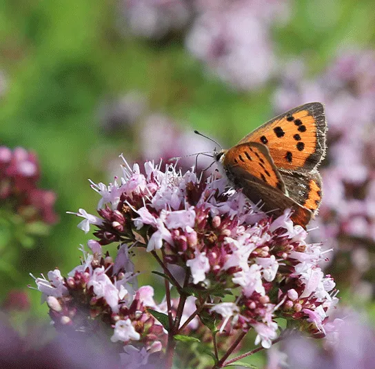 Eine Top-Nektarpflanze für ganz viele unserer Schmetterlinge. Verschiedenste Tagfalter, Weißlinge Segelfalter, Schwalbenschwanz, Großes Ochsenauge, Schachbrettfalter, Kleines Wiesenvögelchen und viele mehr suchen den Dost oft in großer Zahl auf und sind so bestens zu beobachten.