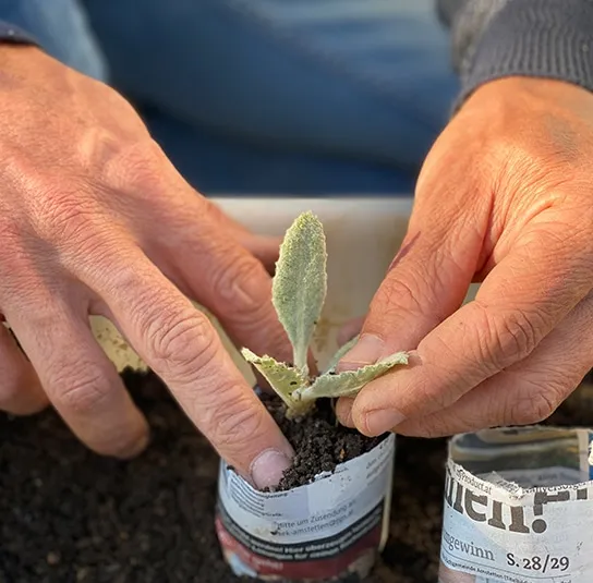 Handgemacht vom Schwiegervater – sind Unikate, daher unterschiedlich groß, die Töpfe werden zw. 7 und 9 cm hoch (selbst beeinflussbar durch Zeitungspapiergröße), Durchmesser: 5,5cm bis 7cm