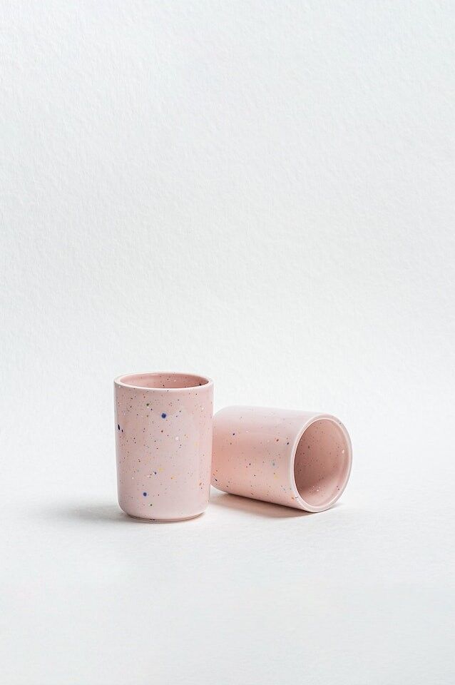 Der Party Cup Becher ohne Henkel vom portugiesischen Herstellers Egg Back Home kommt in einem schönem Pink, welches mit weiteren Farben gesprenkelt ist. Die Farbe und Glasur werden bei den Egg Back Home Bechern und Tassen in Handarbeit aufgetragen. Dazu werden für dieses Geschirr aus Portugal natürliche und lokale Rohstoffe verwendet. Handgemacht bedeutet auch immer, dass jedes Geschirrstück ein echtes Unikat ist. Unregelmäßigkeiten entstehen bei der Handarbeit immer und machen jedes Geschirr zu etwas Besonderem.